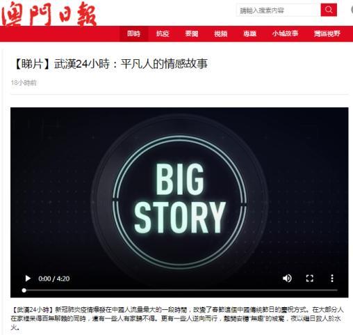 日前,总台抗击疫情纪录片《武汉24小时》粤语精编版在港澳地区主流媒体热播,引起港澳同胞高度关注,反响热烈。港澳媒体纷纷表示,《武汉24小时》节目让当地民众了解到了武汉的真实现状。 多家香港主流媒体转发纪录片《武汉24小时》 △纪录片《武汉24小时》被译制成粤语精编版在港澳地区播出 《武汉24小时》粤语精编版先后在香港无线电视台(TVB)、《南华早报》以及《中国日报》香港版等香港主流媒体播出和转载,引发香港社会高度关注。当地主流舆论表示,该纪录片中每一个小故事都以《武汉面孔》为题,虽然只有3~5分钟,却讲述了疫情中的温情和大爱,直达人心、令人动容。 △《中国日报》香港版 △《中国日报》香港版 在香港中联办的协助下,《武汉24小时》纪录片在当地众多媒体平台呈现多元化传播态势,覆盖受众广泛。香港主流媒体大公文汇集团、《香港商报》对视频进行了全面转载,香港新媒体平台《点新闻》以及在香港年轻人中影响力最大的新媒体平台《橙新闻》也第一时间转发了完整版纪录片和剪辑后的单独故事,在香港形成了媒体传播矩阵,扩大了传播边界。 △香港大公文汇集团 △《香港商报》 △香港《点新闻》 △香港《橙新闻》 香港主流新媒体《紫荆杂志》《HKG报》《港人讲地》等媒体也分别在其官网、YouTube网站、Facebook账号等平台转发纪录片相关介绍和粤语版视频,覆盖300多万香港受众。 △香港《港人讲地》 △香港《紫荆杂志》 在香港本土有较高关注度的《坚料网》在其网络平台同步推送《武汉24小时》纪录片,对总台用心制作如此具有正能量的节目表示感谢和钦佩,称这是在用一种受众易于理解和接受的方式,去记录疫情期间的温情与爱。 △香港《HKG报》 △香港《坚料网》 多家澳门主流媒体转发纪录片《武汉24小时》 △《澳门日报》 △澳门有线电视 △澳门《莲花时报》 △《微观澳门》 澳门当地主流媒体澳门有线电视、澳门广播电视有限公司澳门综艺频道、莲花卫视、澳亚卫视等机构均在其媒体平台积极转播《武汉24小时》纪录片,并对影片予以高度评价。 港澳各界热烈评论:纪录片真情动人 纷纷为中国加油 该片在港澳地区多媒体平台大量转播后,引起港澳同胞热烈反响。网友纷纷留言表示内心充满感动,并为祖国和同胞送上最真挚的祝福,同时希望总台能够制作出更多像《武汉24小时》一样的优秀节目,激发社会正能量、弘扬真善美。 △港澳网友留言 △港澳网友留言 (总台记者 周伟琪 朱丹 戴峰 肖中仁) |
